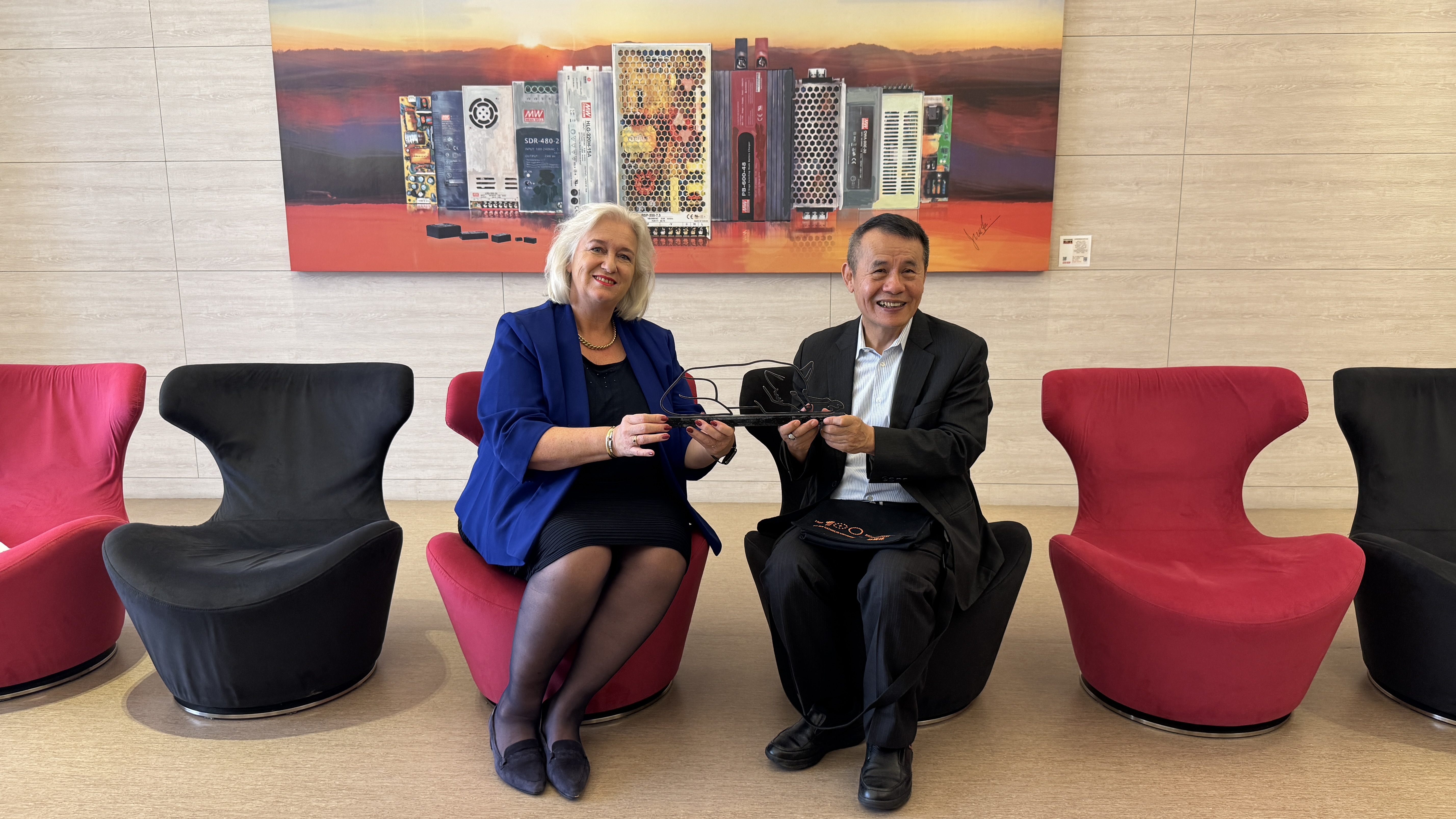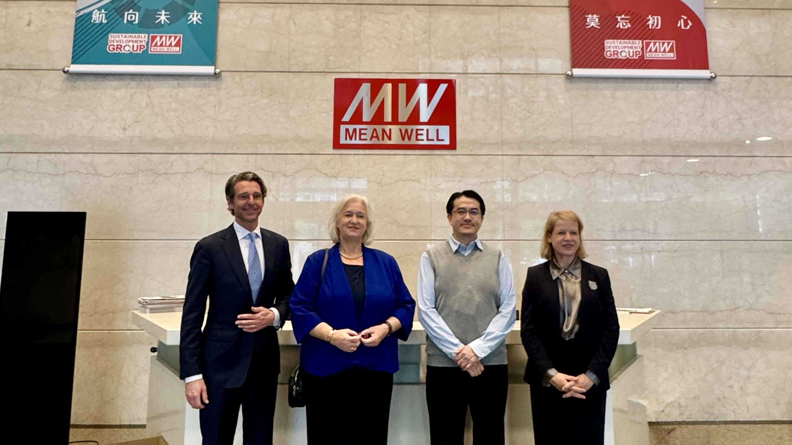 在會談之中,創辦人林國棟先生向貴賓們闡述了明緯品牌命名「MEAN WELL」的精神象徵著「心懷善意」,是企業歷經四十餘年不變的初心。明緯團隊亦向訪團介紹 SDG 集團與明緯集團的全球發展策略,包括綠能科技創新、ESG永續實踐成果,以及歐洲明緯預計於荷蘭哈勒默梅爾市設利的新歐洲綠色據點。