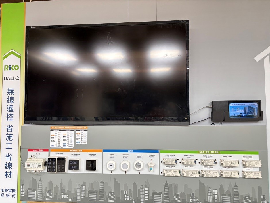 ▲透過展示 DALI-2 智慧照明控制面板及各式燈具與控制模組,透過無線遙控操作,實現省工、省材的智慧照明解決方案,展示明緯在照明系統整合與能源管理上的應用能力。